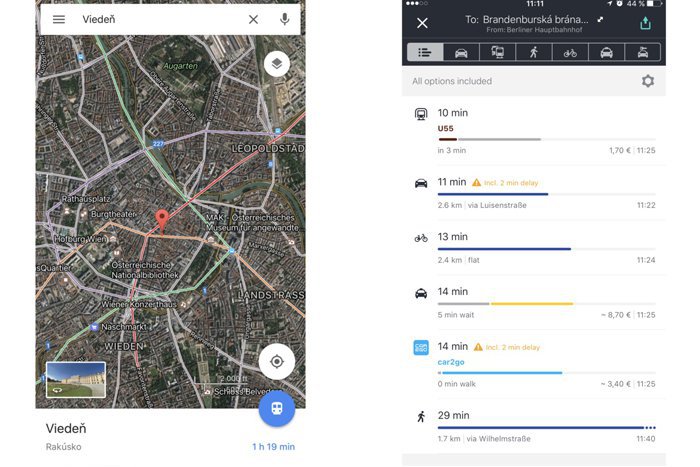 Aj s mapami od Googlu či HERE ale odporúčame siahnuť po dátovom balíku. Ten obe potrebujú na veľmi praktické vyhľadanie liniek metra či miestnej MHD. Na displeji mobilu ťuknete na Brandenburskú bránu a ten odpovie, že vás tam dovezie vlak číslo 2. Aj s časom najbližšieho odchodu a počtom zastávok, ktoré v ňom strávite.