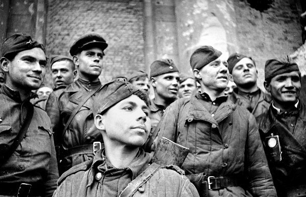 Sovietski vojaci v dobytom Berlíne, máj 1945