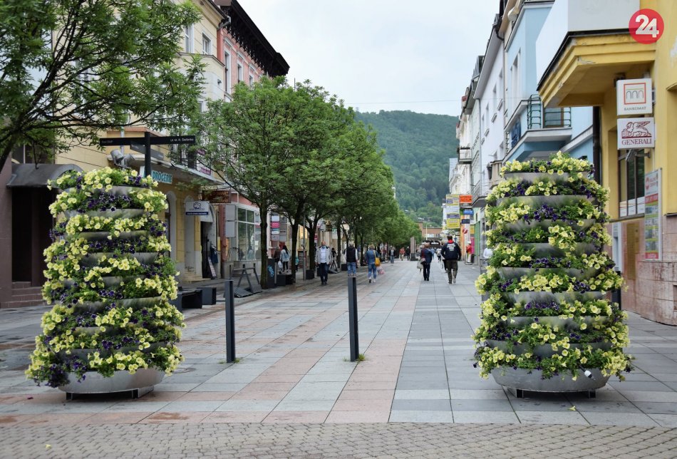 Galéria k článku Centrum Žiliny už hýri farbami: Kvetinovými pyramídami to nekončí