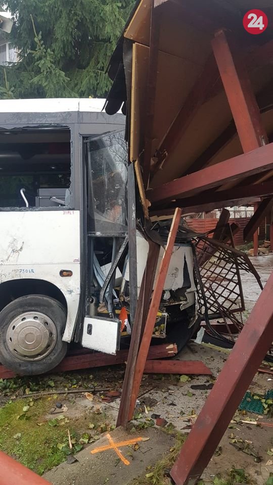 Galéria k článku Autobus v Žiline vletel do altánku rodinného domu: Deväť zranených, FOTO z miesta