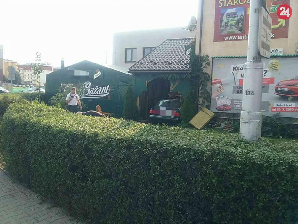 Galéria k článku Vážna nehoda v Mikuláši: Auto skončilo v reštaurácii