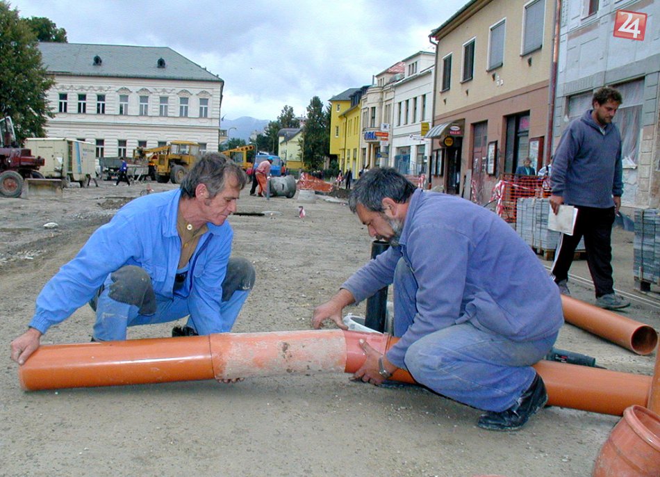 6. septmber 2001: Rekonštrukcia centra Martin pokračuje. Na fotografii môžete vidieť dokončovacie práce na kanalizačných prípojkách a zemných prácach. Preinvestovalo sa vtedy 26 miliónov korún, plánom druhej etapy bolo prestavať 120 miliónov korún.