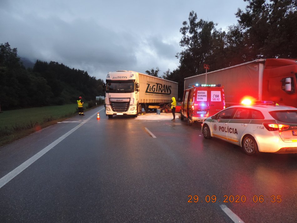 Galéria k článku Nehoda auta a kamióna na Kysuciach: Po zranených letel záchranársky vrtuľník