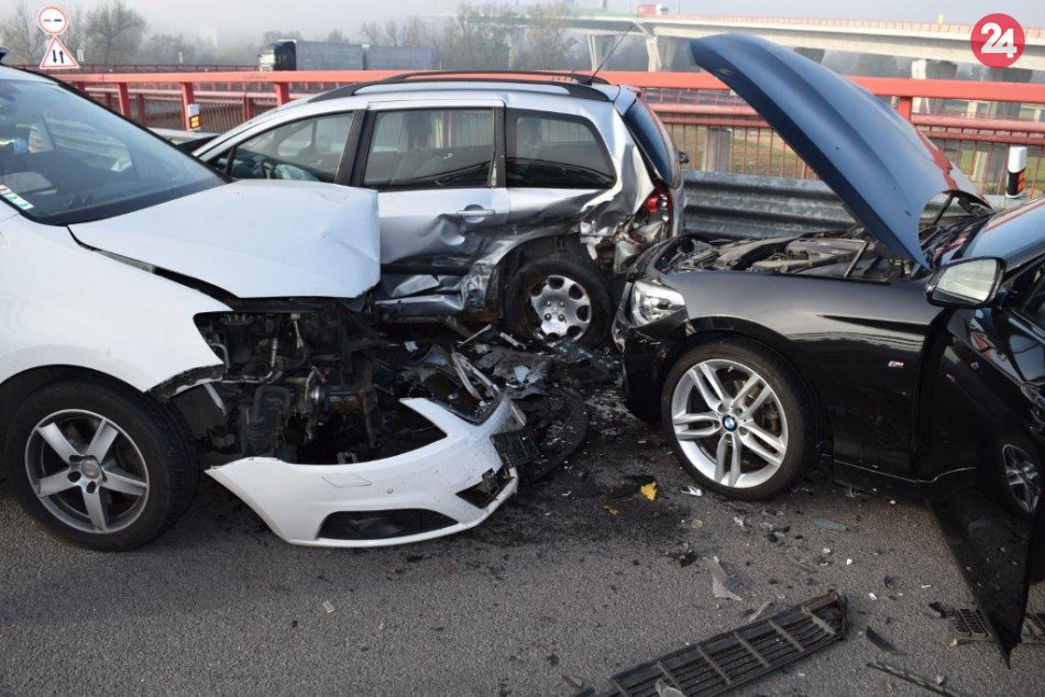 Galéria k článku Zrážka troch áut na diaľnici: Vodič (20) z Mikuláša v protismere, FOTO