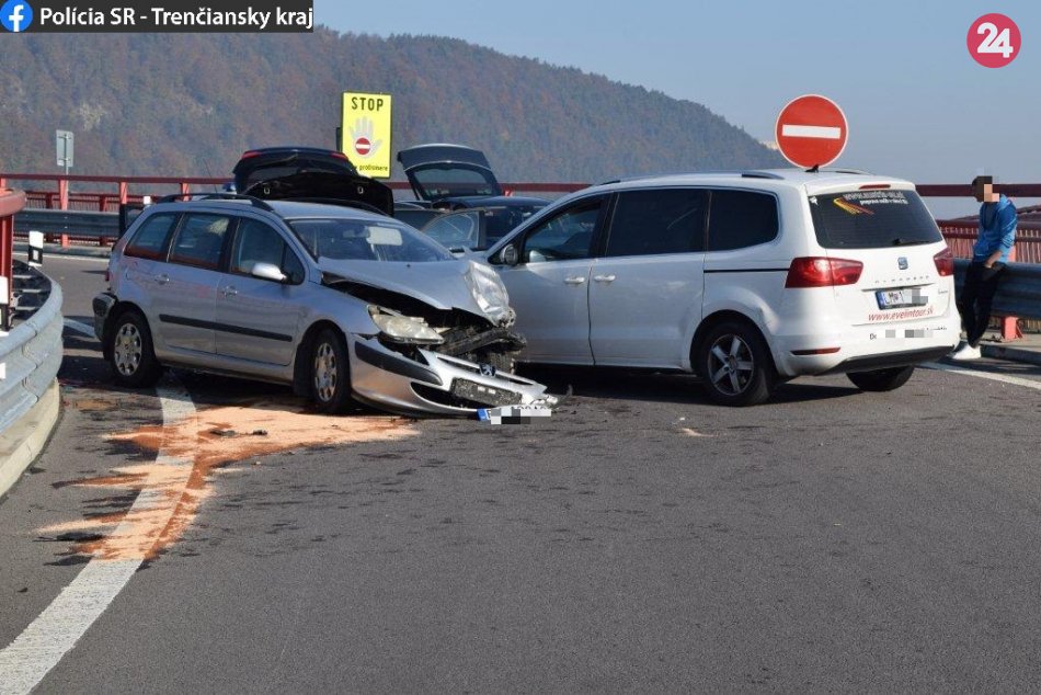 Galéria k článku Zrážka troch áut na diaľnici: Vodič (20) z Mikuláša v protismere, FOTO