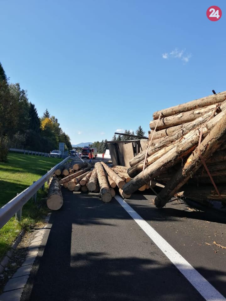 Galéria k článku Pozor na obmedzenia: Na D1 medzi Ružomberkom a Mikulášom sa prevrátil kamión, FOTO