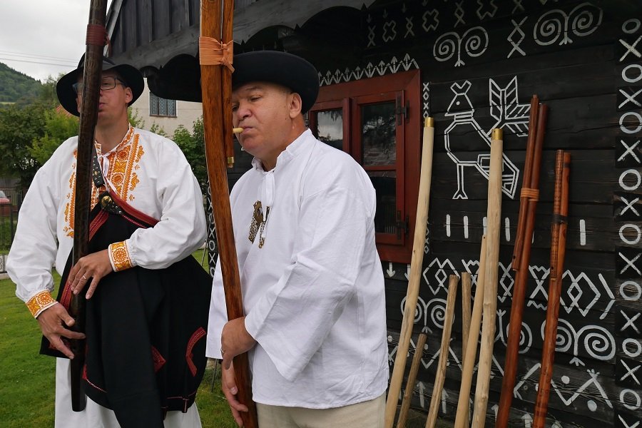 Galéria k článku Čičmany ožívajú krásnou tradíciou: Zišli sa tu fujaristi z celého Slovenska, FOTO