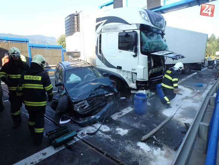 Galéria k článku Došlo k vážnej nehode kamiónov a 3 áut, vodička toyoty nešťastie neprežila!