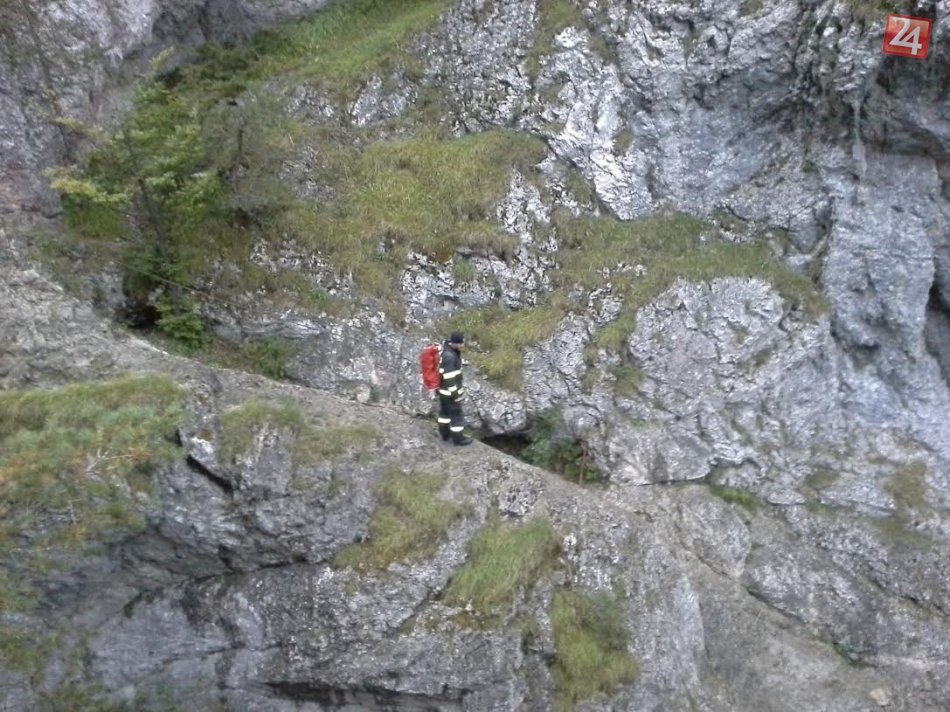 Galéria k článku Náročný zásah mikulášskych hasičov v mokrom, skalnatom teréne: Nevinné stvorenie vyniesli na vlastných rukách! FOTO