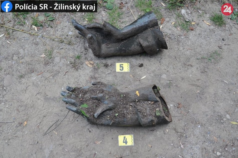 Galéria k článku Našli sa: Žilinskí policajti vypátrali ukradnuté ruky bronzovej sochy