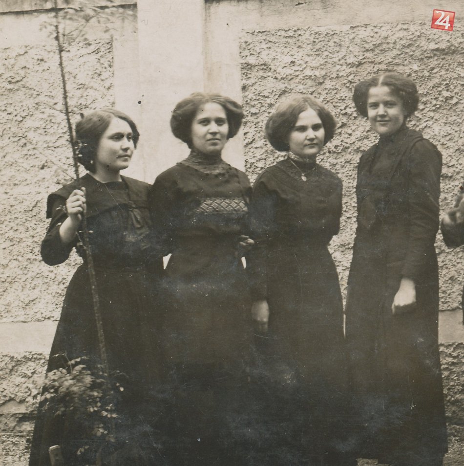 Elena Rázusová s kamarátkami, druhá sprava, 1910