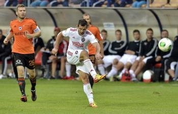 Útočník Trnavy Martin Vyskočil (vpravo) a kapitán Ružomberka Tomáš Ďubek (vľavo)