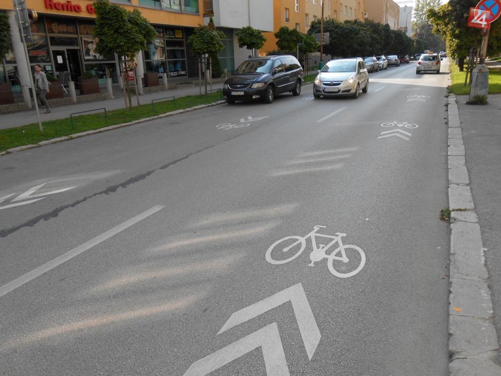 Galéria k článku Nové prvky v Žiline: V meste pribudli cyklopiktokoridory. Viete, čo to je a ako sa na nich správať?