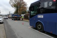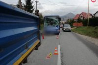 Policajné foto: Zrážka autobusu a nákladiaku v Kysuckom Novom Meste