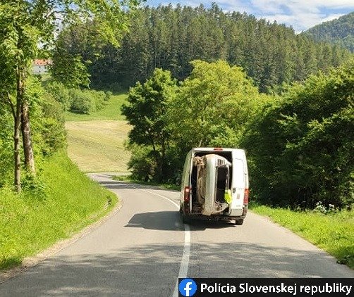 Galéria k článku Skvost z ciest Žilinského kraja: Auto trčiace z dodávky držal len kúsok gumy!