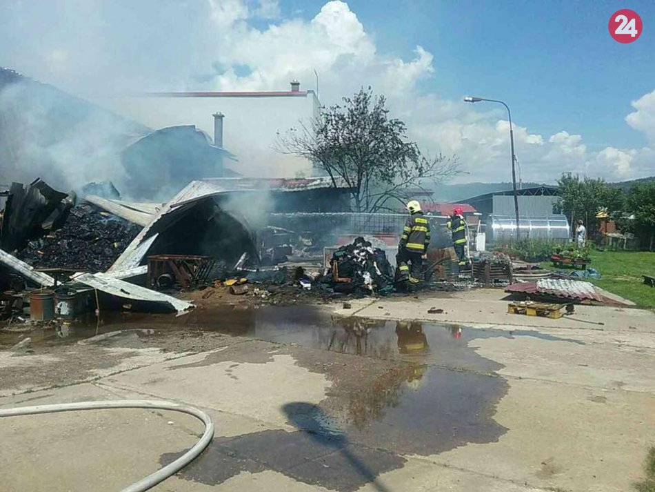 Galéria k článku Hasiči likvidujú požiar autoservisu s pneuservisom v Kysuckom Novom Meste, FOTO