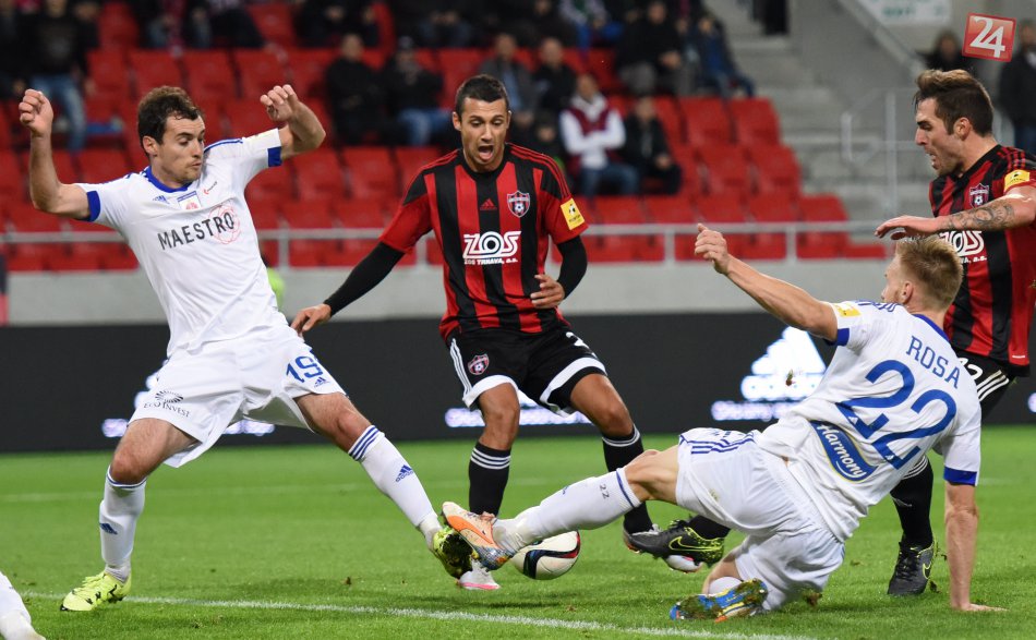 Zľava Gagik Dagbašjan, hráč Trnavy Ivan Schranz, Antonín Rosa a hráč Trnavy David Depetris