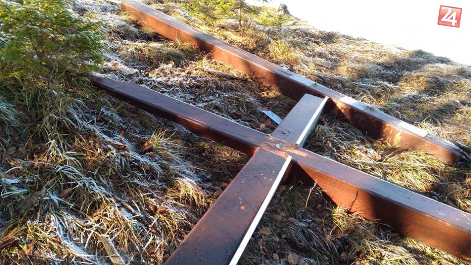 Galéria k článku Stačí sa len nebáť Boha, aby ste odpílili päťmetrový kríž na kopci? Černová je nepoddajná - kríž sa postaví znova