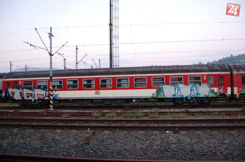 Galéria k článku Policajti mali prácu na železnici: Sprejerský útok na vlakový vozeň! FOTO