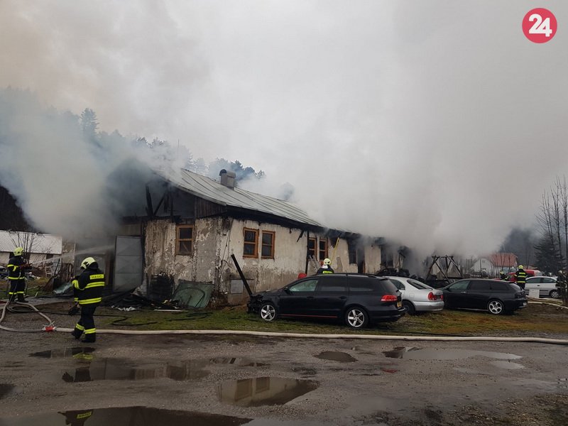 Galéria k článku Tri desiatky hasičov likvidovali požiar pri Žiline: Hrozilo prepadnutie strechy, FOTO