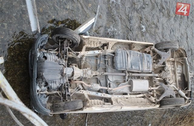 Galéria k článku Zábery, z ktorých mrazí: Vodič na Toyote prerazil mostné zábradlie a zrútil sa do rieky