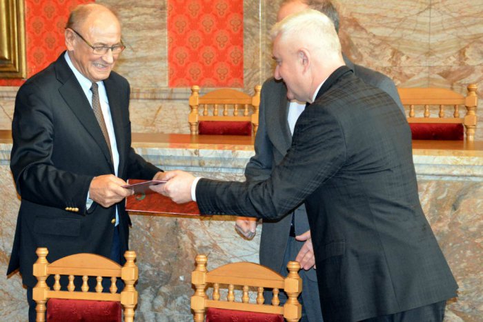 Primátor Igor Čombor, jeho zástupca Michal Slašťan, prezident Mondi SCP, a.s. Bernhard Peschek a predseda predstavenstva spoločnosti Miloslav Čurilla podpísali (8.12.) Memorandum o spolupráci.