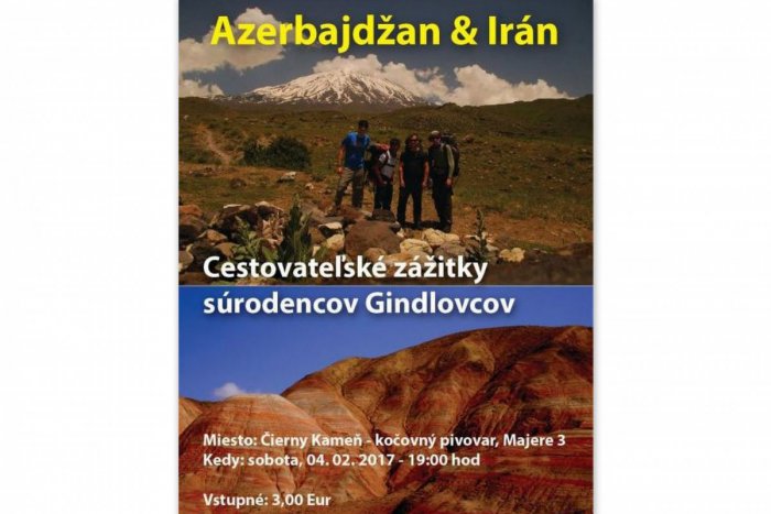 Kočovný pivovar Čierny kameň Vás pozýva na cestovateľský večer s Barbarou a Tomášom Gindlom. Porozprávajú vám o ženskej jazde naprieč Azerbajdžanom a o krásach Iránu a pohoria Alborz. Vstupenky je možné rezervovať telefonicky na tel. čísle 0907 177 160, alebo na e-mailovej adrese ciernykamen@gmail.com