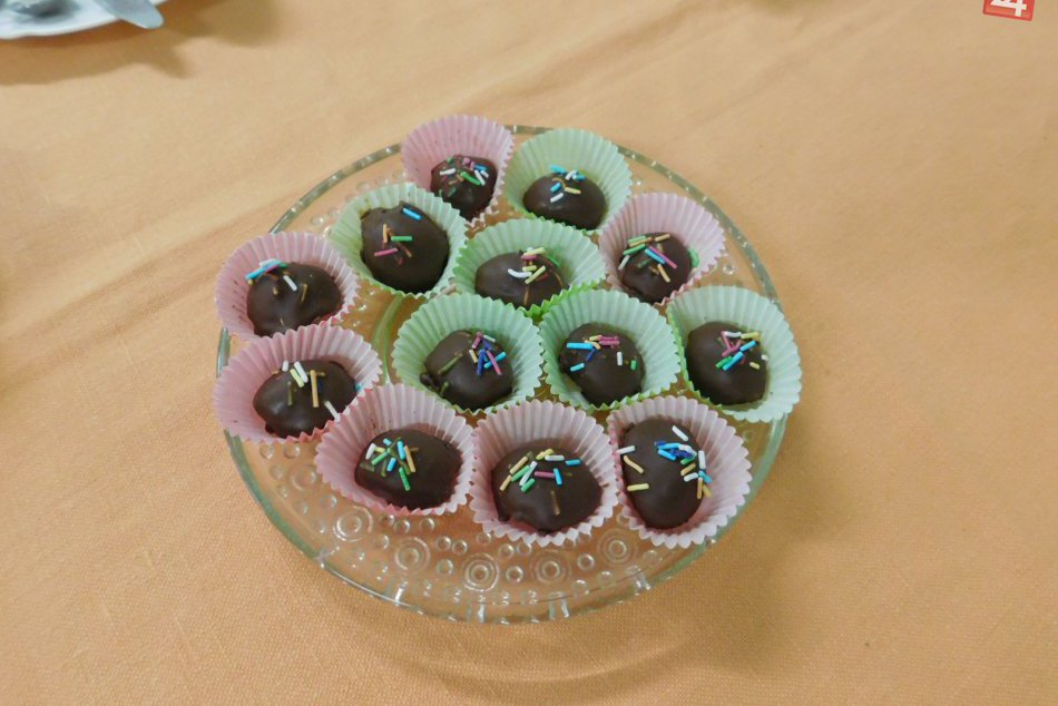 Suroviny: marína keksy, kokos, kakao, pomarančová šťava, práškový cukor, čokoláda biela aj tmavá, ozdoby